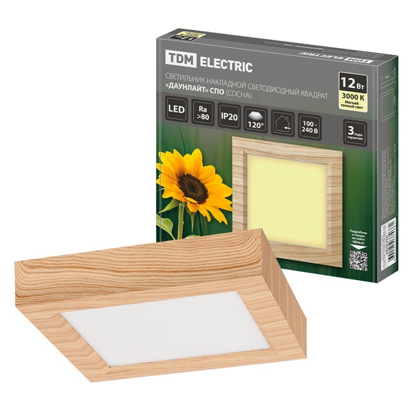 SQ0329-0420 Светильник светодиодный TDM накладной квадрат Даунлайт СПО 12 Вт 3000K (сосна) 170х170х32мм фото 1