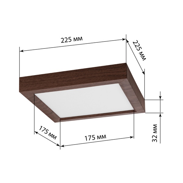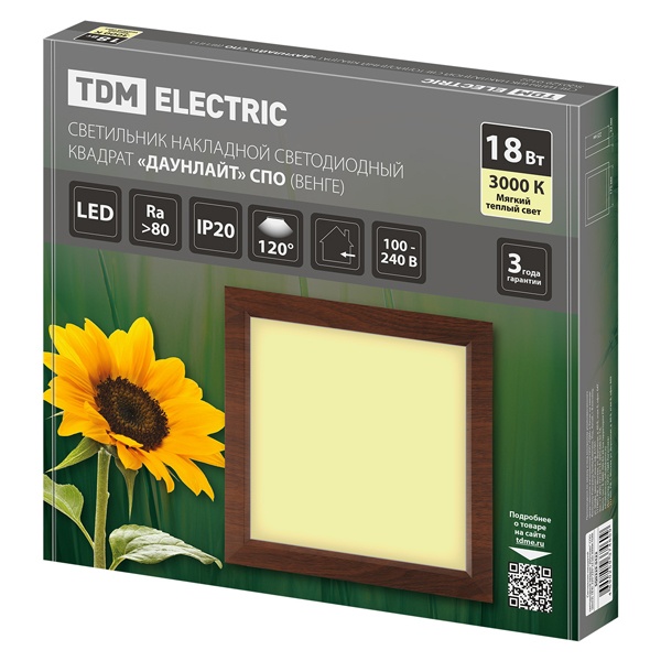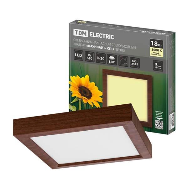 • Светильник светодиодный TDM накладной квадрат Даунлайт СПО 18 Вт 3000K (венге) 225х225х32мм