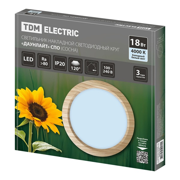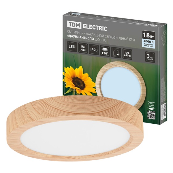 Светодиодный круглый светильник накладного монтажа Downlight ТДМ, мощностью 18 Ватт, нейтральный белый свет, цвет сосна SQ0329-0442
