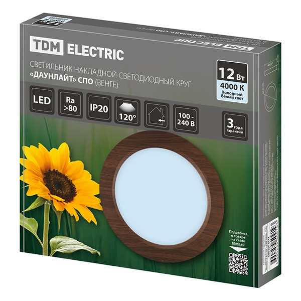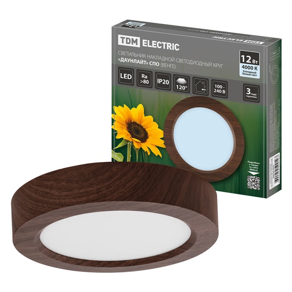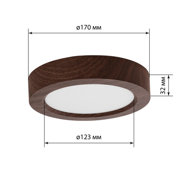 • Светильник светодиодный TDM накладной круг Даунлайт СПО 12 Вт 4200K (венге) 170х32мм
