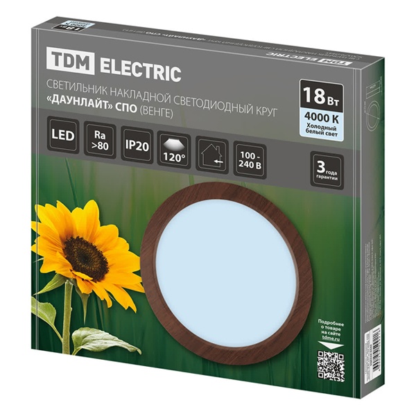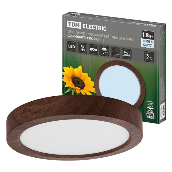 Светодиодный круглый светильник накладного монтажа Downlight ТДМ, мощностью 18 Ватт, нейтральный белый свет, цвет венге SQ0329-0445