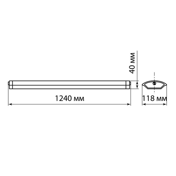 - Габаритные размеры: 1240х118х40 мм