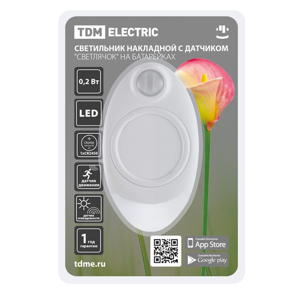 Светильник накладной светодиодный "Светлячок", 0,2 Вт, 1xCR2450, дат. движ. и освещ., TDM Electric