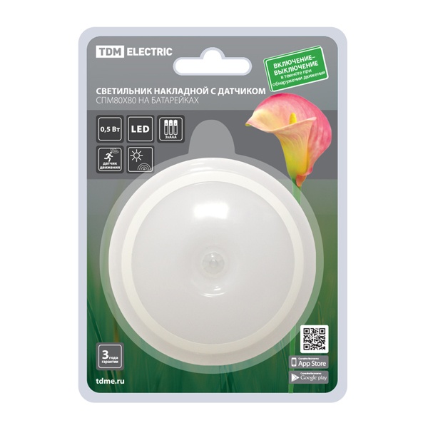 Светильник накладной светодиодный 80х80 0,5 Вт, 3хААА, дат. движ. и освещ., TDM Electric