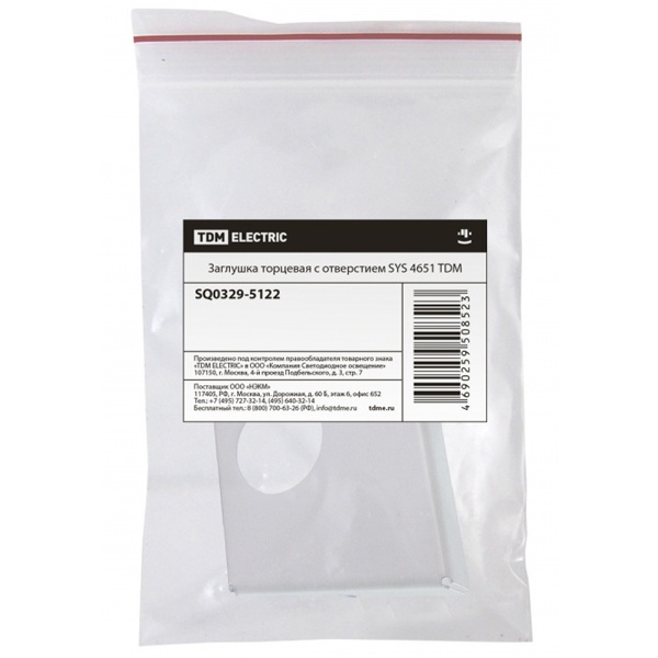 Заглушка торцевая SYS 4651 TDM предназначена для защиты торцов светильников от попадания влаги, пыли, мусора и механических повреждений. Отверстие в заглушке позволяет осуществлять подвод коммуникаций, кабелей или трубопроводов.
