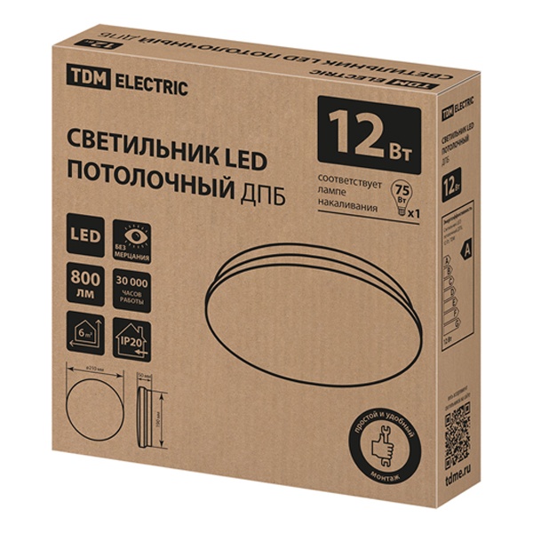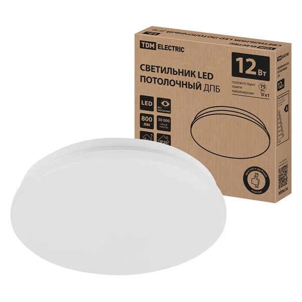 SQ0329-9002 Светильник светодиодный TDM Классика LED ДПБ 01 12W 6000K 800Lm D210mm