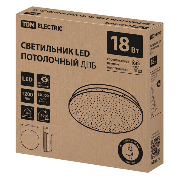 SQ0329-9010 Светильник светодиодный TDM Звездное небо LED ДПБ 02 18W 6000K 1200Lm D250mm фото 1