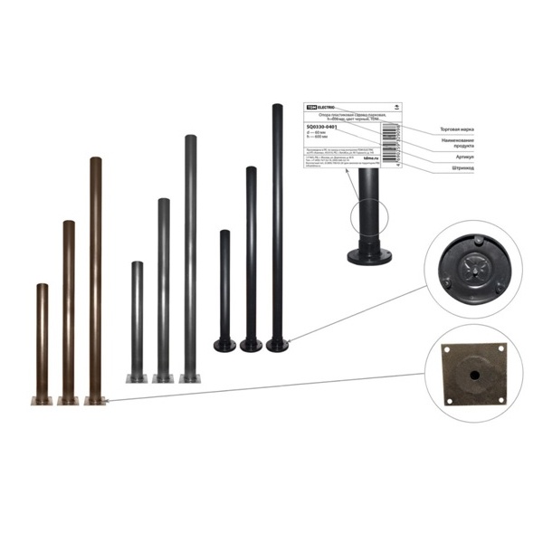 Опора металлическая садово-парковая, h=600 мм, цвет черный, TDM Electric