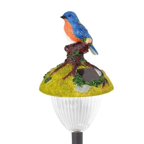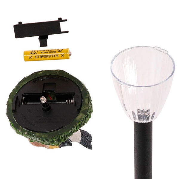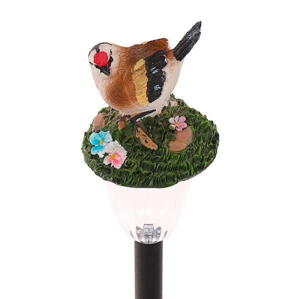 Цветной грунтовый светильник на солнечной батарее фирмы TDM Electric выполнен в виде фигурки птицы, сидящей на колышке. Его высота - 35 см, ширина - 6 см. В ассортименте имеются изделия с птицами различного дизайна. Садовый светильник применяется для декоративной подсветки цветников, альпийских горок, садовых дорожек, водоёмов, летних террас. Он работает от аккумулятора на солнечной батарее, его мощность составляет 0,6 Ватта. Заряда батареи хватает на 8 часов непрерывной работы. Благодаря встроенному фотоэлементу, устройство автоматически заряжается под солнечным светом в дневное время. Источником света служит светодиод, который плавно меняет цвет. Подставка светильника выполнена из стойкого к коррозии материала. Фигурка птицы – акрил. Прочная конструкция и влагонепроницаемый корпус обеспечивают светильнику длительный срок службы. Светильник подходит для установки на улице - по степени защиты от пыли и влаги соответствуют IP44. Вес изделия – 0,146 кг. Гарантийный срок – 6 месяцев. Срок службы – 2 года.