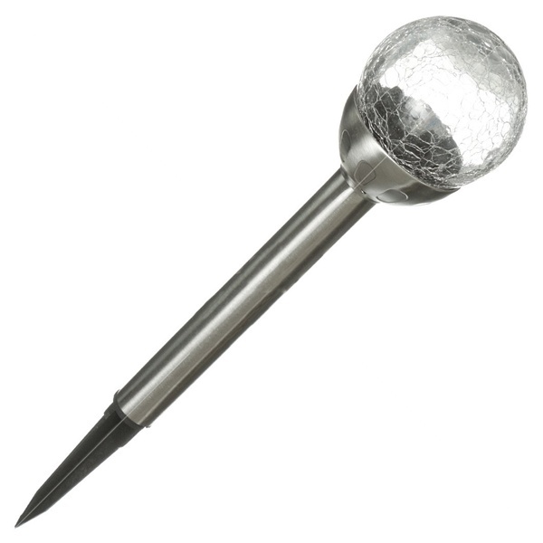 Стильный современный садовый светильник производителя ТDМ Electric типа Bollard используется как элемент локальной уличной подсветки. Он задает объем пространства, выполняет навигационную функцию, акцентирует внимание на зонах отдыха и элементах благоустройства. Декоративный светильник на солнечной батарее – это отличное решение для уличного освещения, где невозможно установить проводные фонари. Солнечная батарея рассчитана на 8 часов непрерывной работы. Благодаря встроенному фотоэлементу, фонарь автоматически заряжается под солнечным светом в дневное время, включается в темное время суток и выключается днем. Осветительный прибор устанавливается в грунт. Материал корпуса устройства – хромированная сталь, плафон имеет форму шара с эффектом «кракле», он выполнен из пластика и обеспечивает оригинальное свечение и красивые блики на освещаемой поверхности. Источник света – LED лампа. Высота светильника – 34 см, диаметр – 8 см, вес – 0,36 кг. Номинальная нагрузка – 0,6 Ватт. Садовый светильник обладает влагозащитой высокого уровня IP44. Срок службы изделия – 2 года. Гарантийный срок – 6 месяцев.