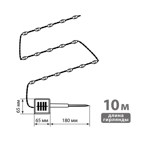 Гирлянда на солнечной батарее ССГ — это стильное и энергоэффективное решение для украшения вашего сада, террасы или балкона. Она оснащена 100 светодиодами, излучающими мягкий тёплый белый свет, который создаёт уютную атмосферу. Длина гирлянды составляет 10 метров, что позволяет оформить значительную площадь или подчеркнуть элементы ландшафтного дизайна.