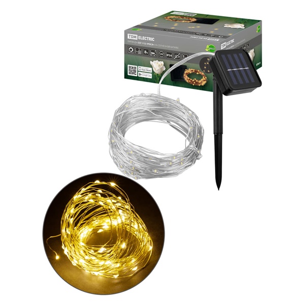 Гирлянда садовая ТДМ ССГ-119 на солнечной батарее, 100 светодиодов теплого света SQ0330-0199