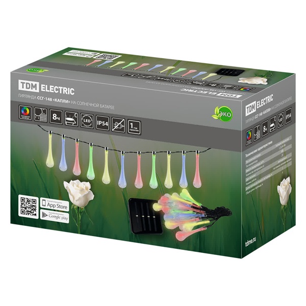 Гирлянда садовая ТДМ ССГ-148 на солнечной батарее, 20 светодиодов в форме капли SQ0330-0200