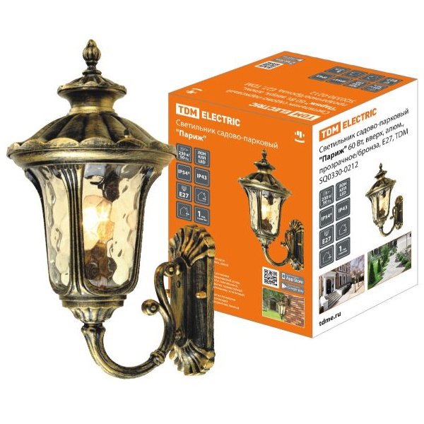 Садово-парковый светильник настенный Париж ТДМ, максимальная мощность лампы 60 Ватт, цоколь E27, цвет бронза, высота 460 мм SQ0330-0212