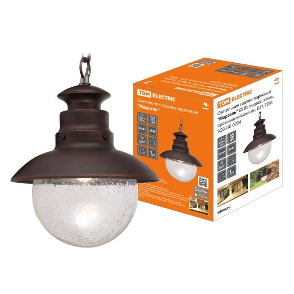 Светильник садово-парковый TDM Марсель 60W E27 алюминиевый корпус махагон подвесной SQ0330-0234