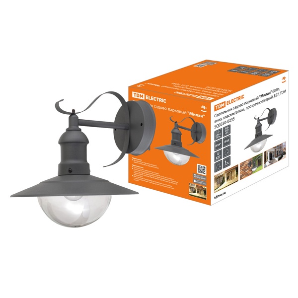 Садово-парковый светильник настенный Милан ТДМ, максимальная мощность лампы 60 Ватт, цоколь E27, цвет серый SQ0330-0235