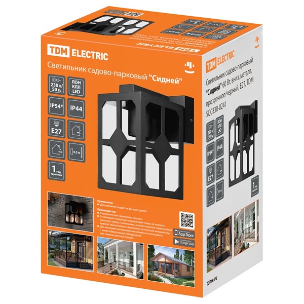 Светильники стационарные для ламп накаливания до 60 Вт предназначены для работы в однофазных сетях переменного тока 230 В. Область применения: декоративное освещение фасадов зданий, загородных домов, территорий кафе и веранд.
