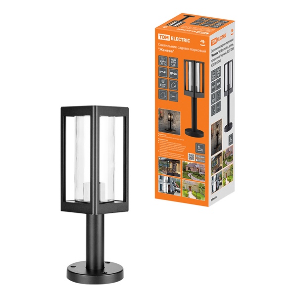 SQ0330-0243 Светильник садово-парковый TDM Женева 60W E27 стойка, алюминий, прозрачное/черный фото 1