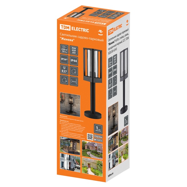 • Светильник садово-парковый TDM Женева 60W E27 стойка, алюминий, прозрачное/черный