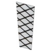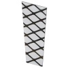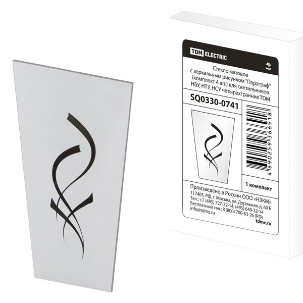 Набор стекол с зеркальным рисунком от известной компании TDM Electric представляет собой комплект декоративного стекла для установки в четырехгранный светильник садово-паркового назначения. В набор входит 4 стекла, которые подходят для осветительных приборов серий НБУ, НТУ и НСУ. Светильники могут размещаться внутри помещений или создавать декоративное оформление участков жилого назначения и общественных мест: ресторанов, кафе и коттеджей. Каждый элемент комплекта имеет матовое покрытие и форму трапеции с нанесенным на нее изображением в виде параграфа. Такой акцент подчеркивает индивидуальный стиль фонарей, а матовое покрытие создает мягкий рассеянный свет, который приятен для глаз.Стекло имеет следующие размеры:ширина верхней грани – 9.7 см;ширина нижней грани – 6.3 см;высота – 13 см.Стекла, используемые в качестве боковых стенок светильника, выполняют также защитную функцию источника света и предотвращают попадание пыли и влаги внутрь корпуса. Комплект упакован в индивидуальную коробку с нанесенной на нее информацией и стикером со штрих-кодом. При желании декоративные стекла с зеркальным рисунком можно поменять на комплект с другим изображением или простым матовым покрытием без рисунка. Масса набора составляет 310 г.