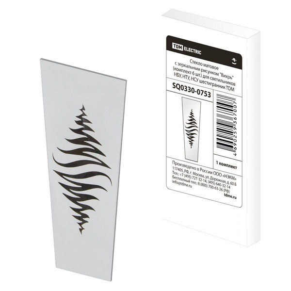 Декоративный набор стекол от известной компании TDM Electric представляет собой комплект из 6 элементов с зеркальным изображением «Вихрь». Он рассчитан на установку в осветительные приборы наружного типа серий НБУ, НТУ и НСУ, которые служат для внешнего оформления садов, участков, парков, скверов, зон отдыха и ресторанов. Осветительные приборы имеют форму шестигранника и обладают разными типами монтажа. Декоративные боковые стенки создают индивидуальный стиль и неповторимый дизайн изделий. Они имеют матовое покрытие, которое комфортно для восприятия. С его помощью обеспечивается мягкое рассеянное свечение. Также стекло защищает источник света от попадания мусора, пыли и влаги внутрь конструкции, тем самым увеличивается продолжительность службы светильника. Удобство такого комплекта состоит в том, что при желании его можно заменить на простой матовый без нанесения изображения или с другим рисунком.Стекло в виде трапеции имеет параметры:ширина верхней грани – 6 см;ширина нижней грани – 4 см;высота – 14.7 см.Комплект упакован в коробку с индивидуальным стикером и снабжен необходимой информацией по установке и эксплуатации. Масса набора составляет 320 г.