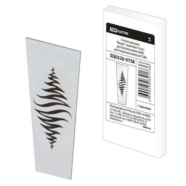 Декоративный набор стекол от известной компании TDM Electric представляет собой комплект из 6 элементов с зеркальным изображением «Вихрь». Он рассчитан на установку в осветительные приборы наружного типа серии 6060, сделанных из металла и служащих для внешнего оформления садов, участков, парков, скверов, зон отдыха и ресторанов. Светильники имеют форму шестигранника и обладают разным типом установки и цветом конструкции. Декоративные боковые стенки создают индивидуальный стиль и неповторимый дизайн изделий. Они имеют матовое покрытие, которое комфортно для восприятия. С его помощью обеспечивается мягкое рассеянное свечение. Также стекло защищает источник света от попадания мусора, пыли и влаги внутрь корпуса, тем самым увеличивается продолжительность службы светильника. Удобство такого комплекта состоит в том, что при желании его можно заменить на простой матовый без нанесения изображения или с другим рисунком.Стекло в виде трапеции имеет параметры:ширина верхней грани – 6 см;ширина нижней грани – 4 см;высота – 15 см.Комплект упакован в коробку с индивидуальным стикером и снабжен необходимой информацией по установке и эксплуатации. Масса набора составляет 320 г.