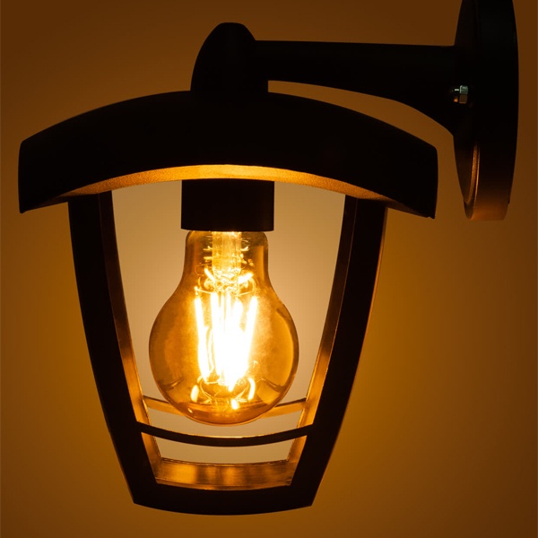 Фасадный черный четырехгранный светильник настенной установки вниз под лампу с цоколем E27 мощностью 60 Ватт, прозрачный рассеиватель SQ0330-1302