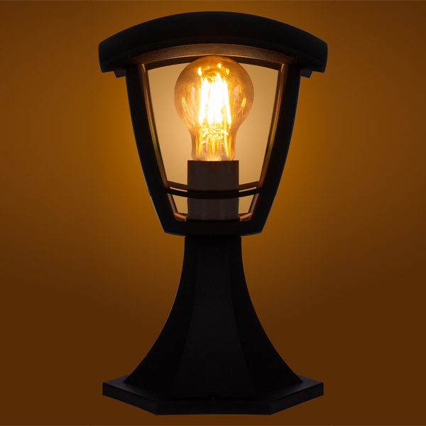 Черный четырехгранный светильник на постамент под лампу с цоколем E27 мощностью 60 Ватт, прозрачный рассеиватель SQ0330-1304