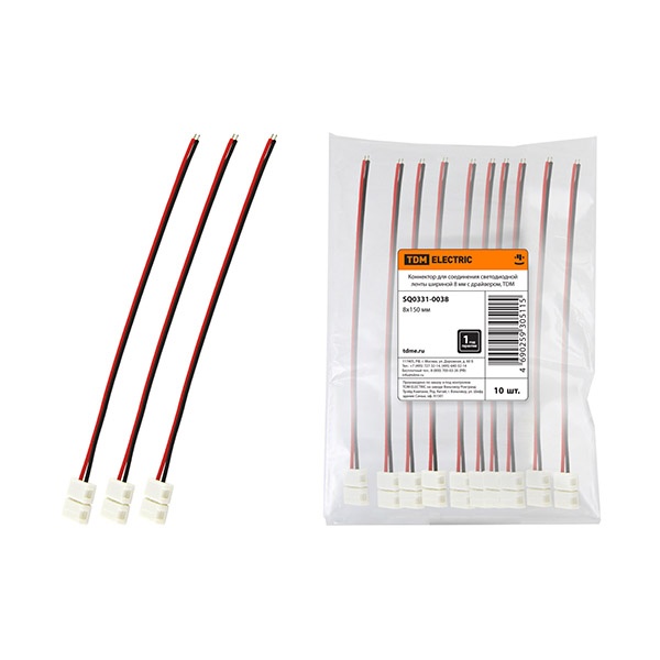 Гибкий соединитель ТДМ длиной 150 мм для подключения двухполюсной светодиодной ленты шириной 8 мм к блоку питания(драйвер) SQ0331-0038