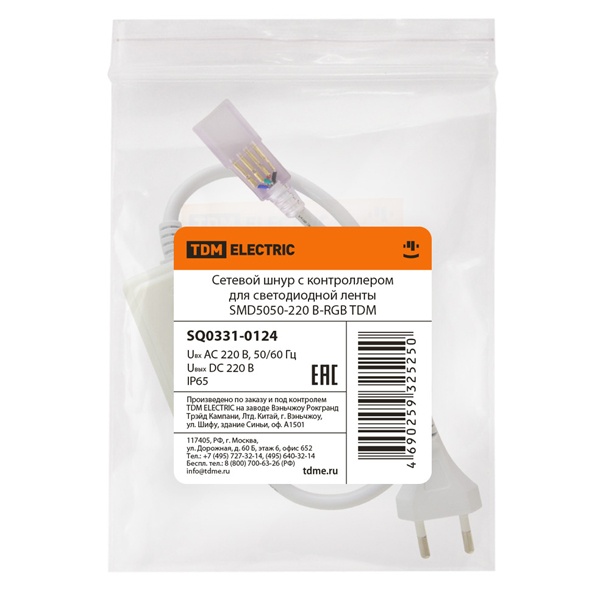 SQ0331-0124 Шнур сетевой TDM для светодиодной ленты SMD5050-220V RGB фото 1