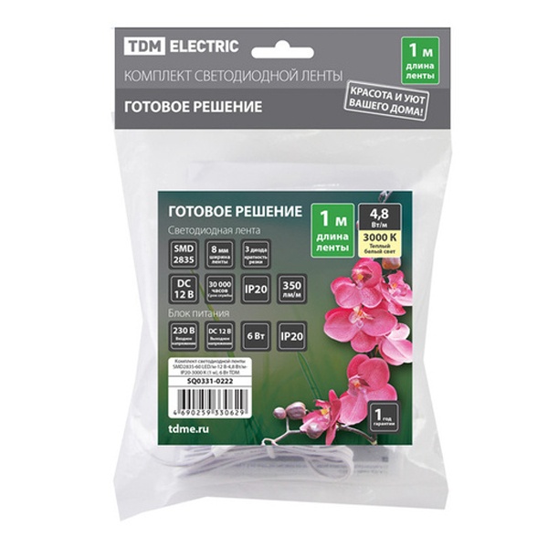 Комплект светодиодной ленты TDM SMD2835-60 LED/m 4,8W/m 3000K 12V IP20 (упаковка 1 метр) 6W SQ0331-0222