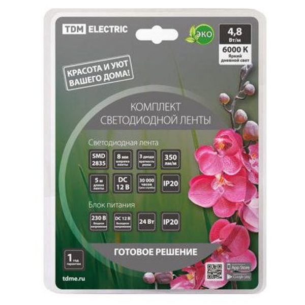 В комплекте: светодиодная лента, адаптер, IR-контроллер (для RGB ленты). Монтаж комплекта светодиодной ленты настолько прост, что его можно выполнить самостоятельно, не имея специальных навыков. Оптимальный ассортимент для розничных магазинов: комплекты по 1, 3 и 5 м. Компактный адаптер в комплекте. Для мотажа ленты не понадобится много места. Выключатель на проводе адаптера обеспечит удобное управление светодиодной лентой.