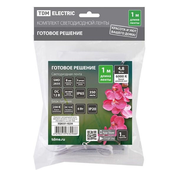 • Комплект светодиодной ленты TDM SMD2835-60 LED/m 4,8W/m 6000K 12V IP65 (упаковка 1 метр) 6W