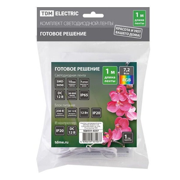 SQ0331-0237 Комплект светодиодной ленты TDM SMD5050-30 LED/m 7,2W/m RGB 12V IP65 (упаковка 1 метр) IR-контроллер фото 1