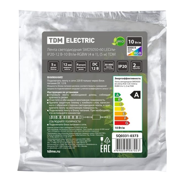 SQ0331-0373 Лента светодиодная TDM SMD5050 60 LED/m 10 W/m RGBW (4 в 1) 12V IP20 (5 метров)
