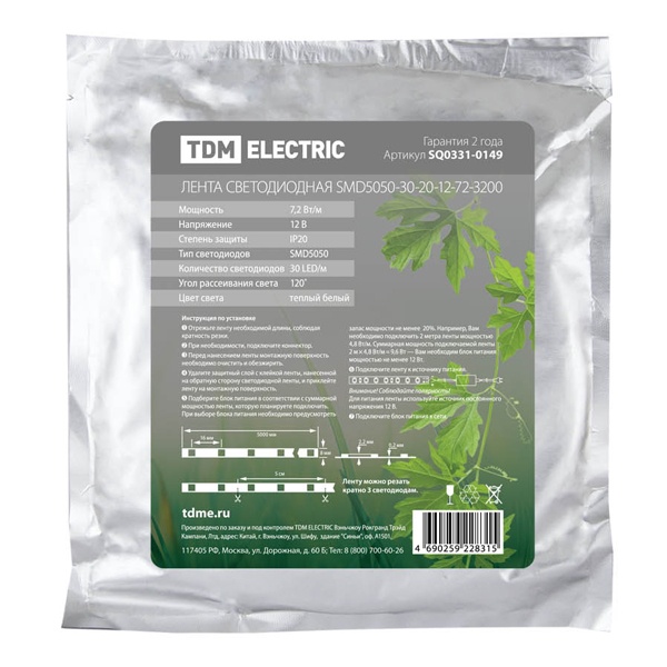 • Лента светодиодная TDM SMD5050+SMD2835 60 LED/m 8 W/m RGB+3000K 12V IP20 (5 метров)