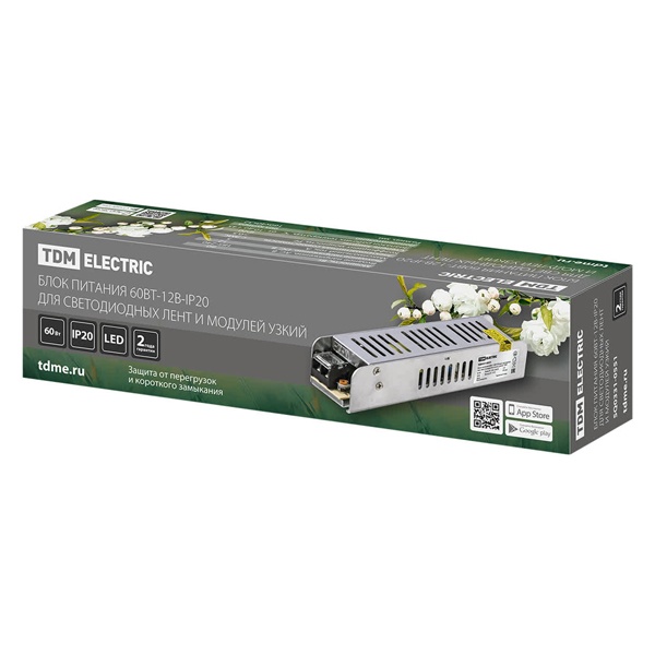 Блок питания TDM 60W 12V IP20 для светодиодных лент и модулей DC узкий металлический корпус SQ0331-0551