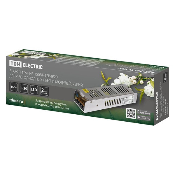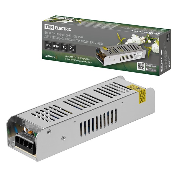 • Блок питания TDM 150W 12V IP20 для светодиодных лент и модулей DC узкий металлический корпус