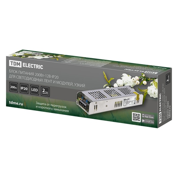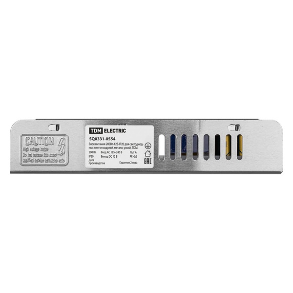 Блок питания TDM 200W 12V IP20 для светодиодных лент и модулей DC узкий металлический корпус SQ0331-0554