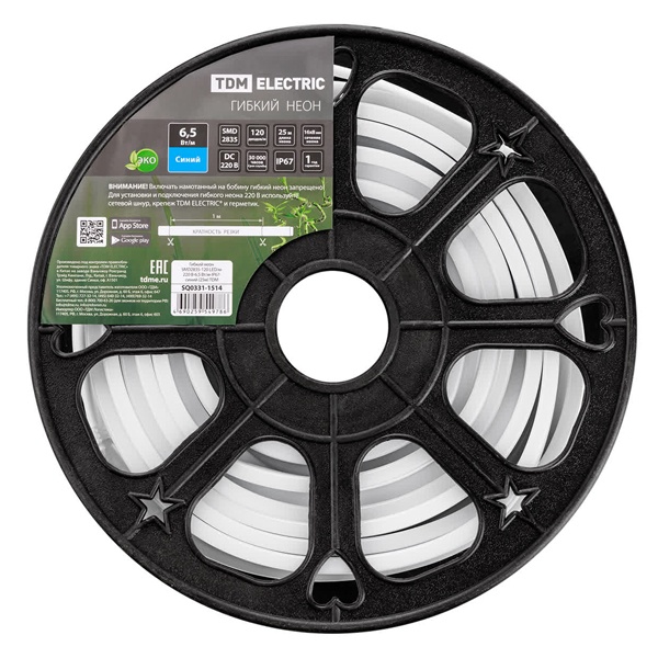 • Гибкий неон TDM SMD2835 120 LED/m 6,5 W/m синий 220V IP67 (25м)