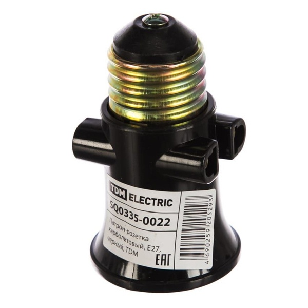 Патрон-розетка карболитовый, Е27, черный, TDM Electric