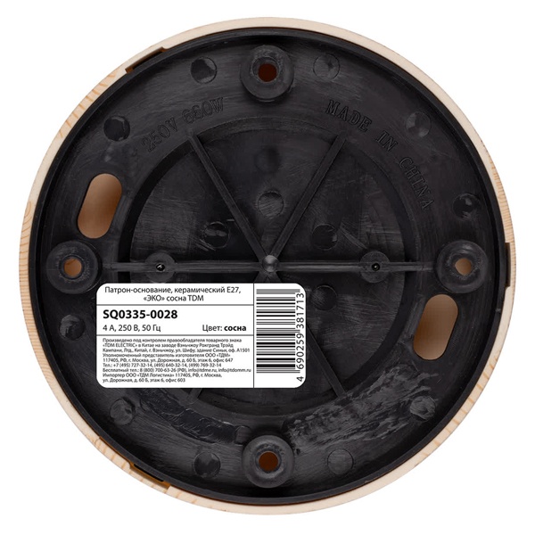 SQ0335-0028 Патрон-основание TDM, керамический E27, ЭКО сосна, накладной