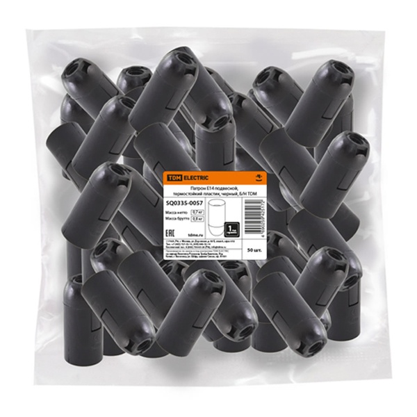 Патрон Е14 TDM подвесной, термостойкий пластик, черный, Б/Н SQ0335-0057