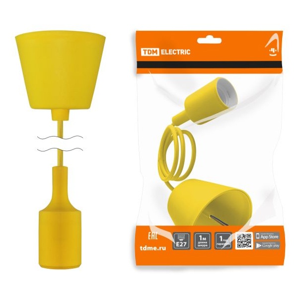 Патрон с подвесом, под лампу с цоколем E27, длина провода 1 метр, цвет желтый SQ0335-0065