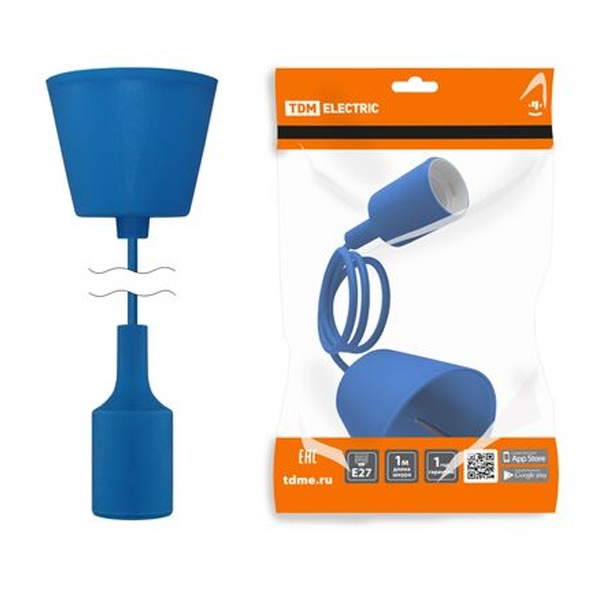 Патрон с подвесом, под лампу с цоколем E27, длина провода 1 метр, цвет синий SQ0335-0066