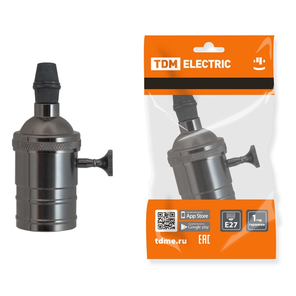 Патрон подвесной Е27 с выключателем, металлический "Лофт", черный TDM Electric