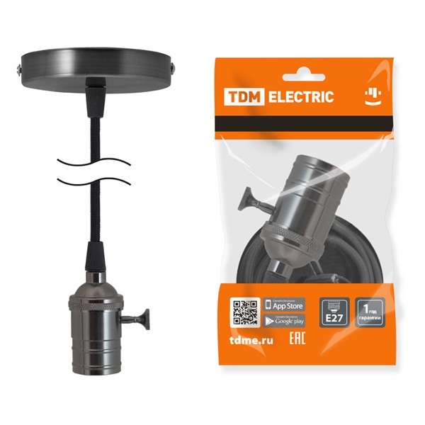 Назначение:Для декоративного освещения помещений. Преимущества:В ассоритменте как отдельно патроны, так и конструкция с подвесом и проводником в сборе. Регулировка длины провода. Дизайнерское оформление интерьера. Наличие выключателя на патроне в артикулах SQ0335-0067, SQ0335-0068, SQ0335-0069, SQ0335-0073, SQ0335-0074, SQ0335-0075. Конструкция:Длина провода 1 м. Патрон E27 совместим с любыми типами ламп, имеющими аналогичный цоколь. Набор для крепления. Материалы:Металлический подвес и чаша. Пластиковый патрон Е27. Тканевая оплетка провода.