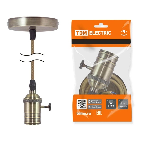 • Патрон Е27 TDM с выключателем с подвесом 1 м, металлический Лофт, бронза