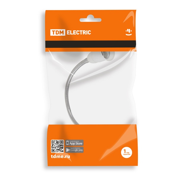 Переходник вилка-Е27 гибкий 300мм, белый, TDM Electric