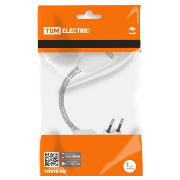 Переходник вилка-Е27 гибкий 300мм с выключателем, белый, TDM Electric
